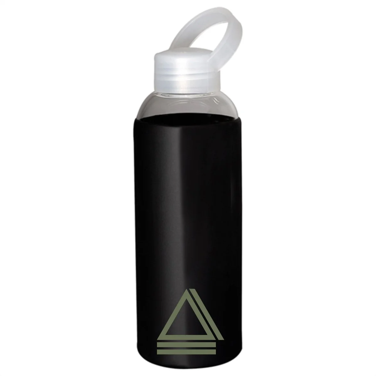 Hydration with no compromises. Built for the disciplined, this 18 oz glass bottle features a rugged silicone grip and a secure screw-on lid—keeping you locked in and mission-ready wherever you go.